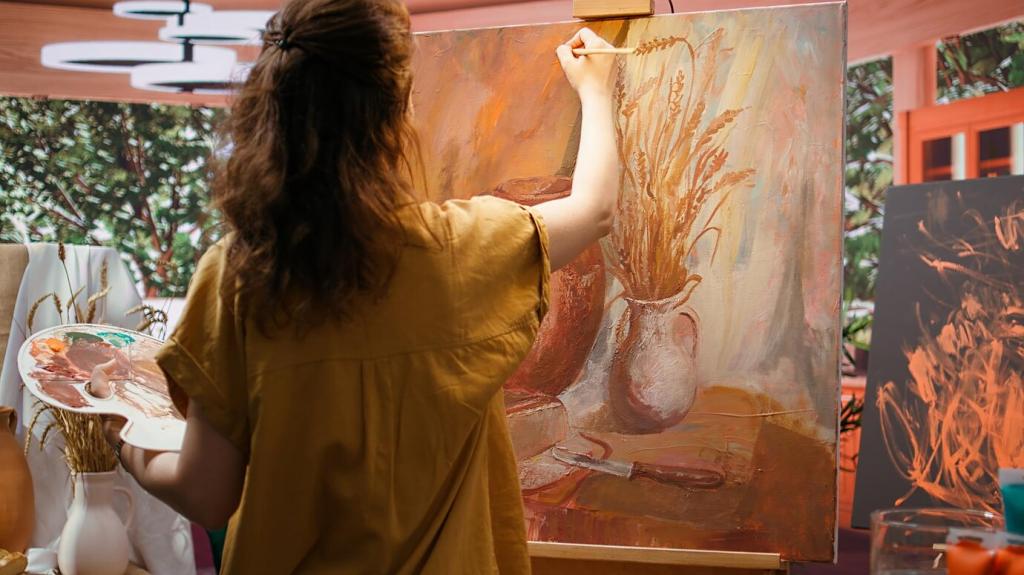 Leonardo experimentierte mit Schichten und Bindemitteln, was Tiefe bringt, aber auch Vergänglichkeit. Geduld zahlt sich aus: Lange Betrachtung enthüllt Töne, die im Vorübergehen unsichtbar bleiben. Teilen Sie Ihre Beobachtungsrituale und abonnieren Sie für Übungen, die langsames Sehen trainieren.